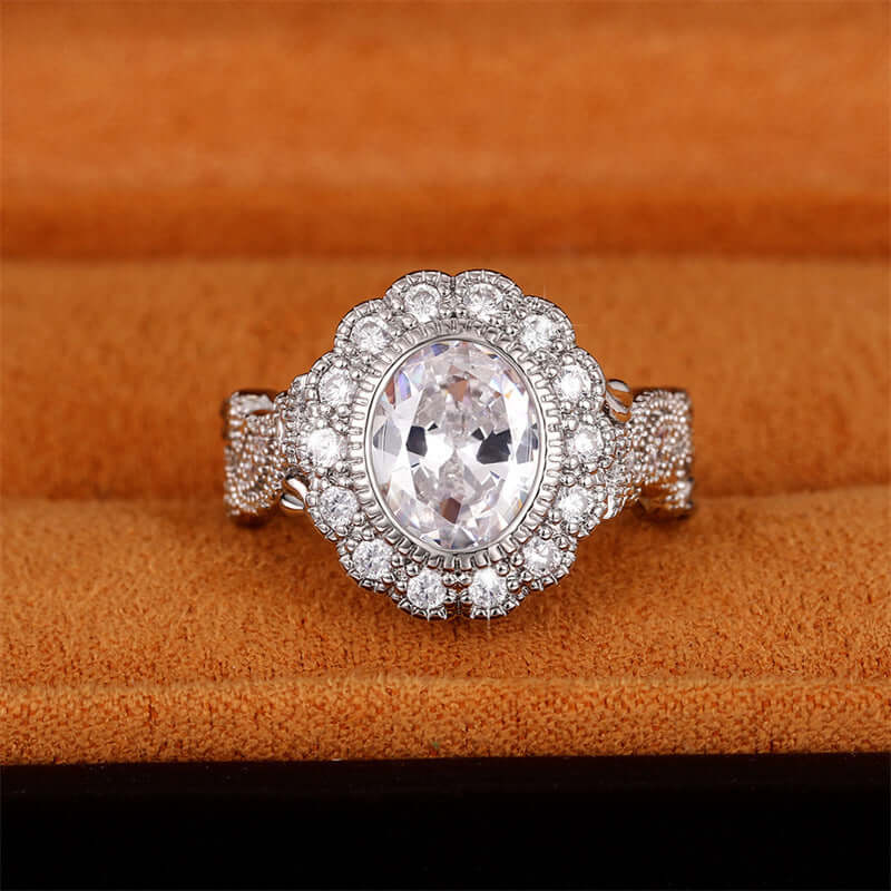Full Diamond Copper Plating Round Diamond Zircon Ring Female European And American Luxury