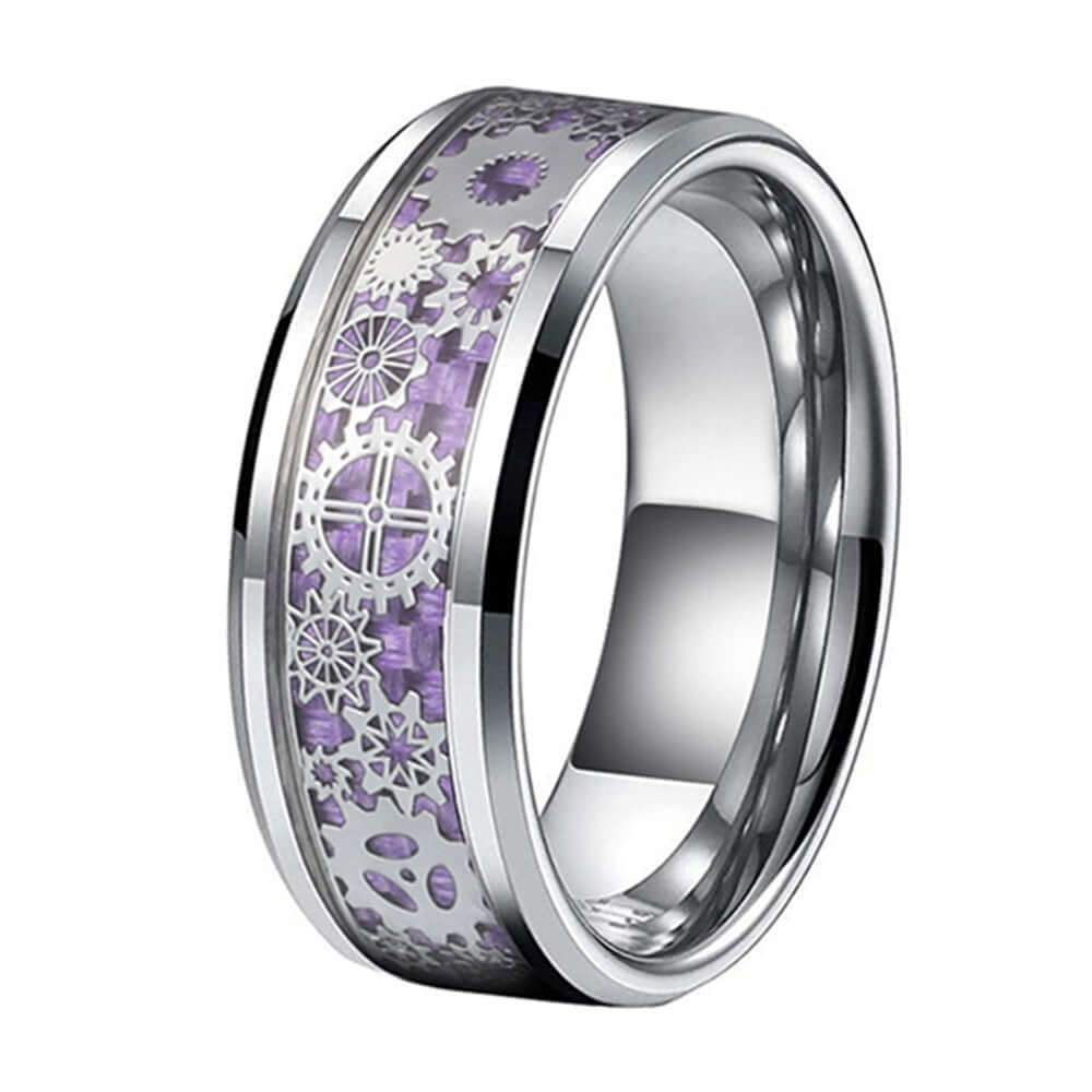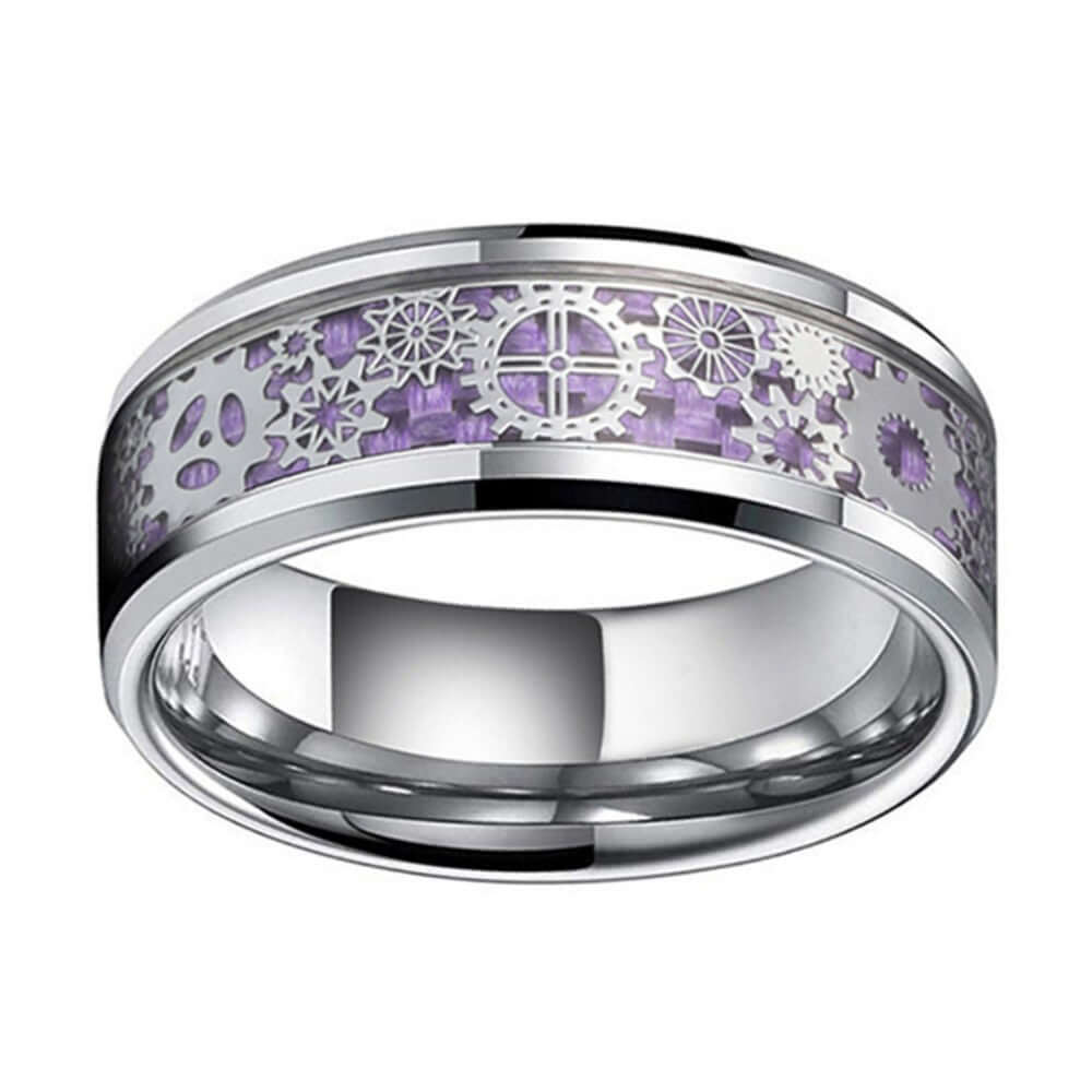 Stainless Steel Purple Gear Patch Ring For Men
